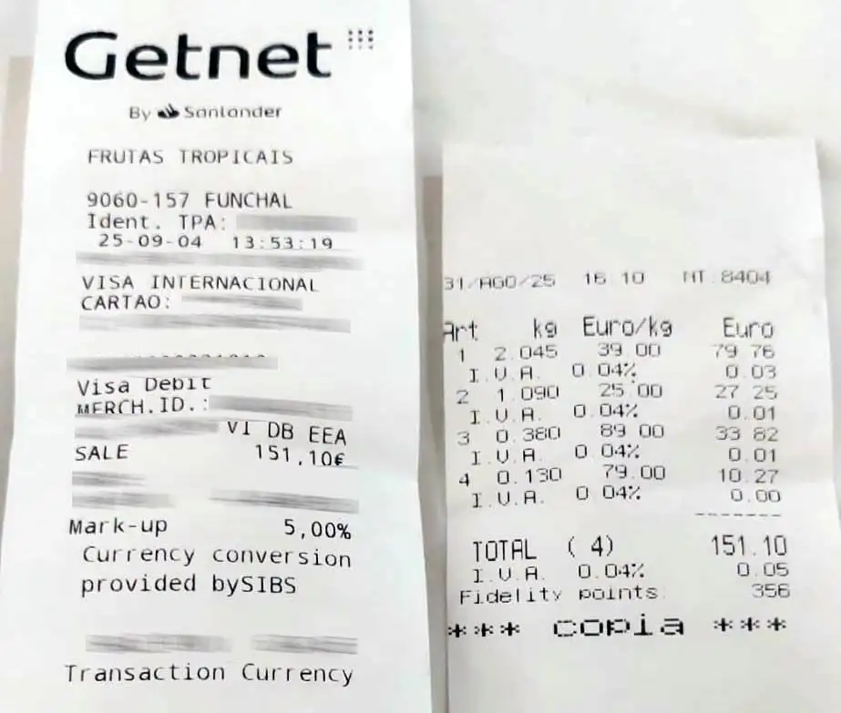Be honest: would you pay €89/kilo for fruit? You would not! Yet, visitors are often faced with paying extremely high prices for ordinary fruits. These practices are not hidden, they happen openly in one of Madeira’s most iconic places, every single day. In the following case, see picture below for fruits and the corresponding bill, tourists were charged €151.10 for what easily fits in a single bag. Easily a most shocking overcharge that took place in September of this year.